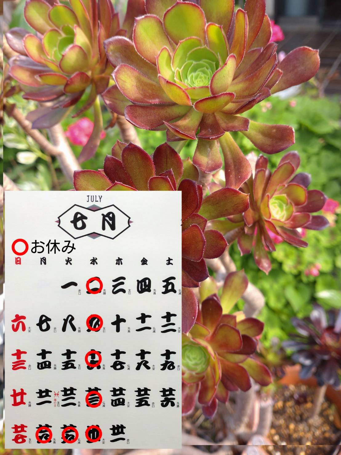 7月の休業日は7月2日・9日・16日・23日・28日・29日・30日です